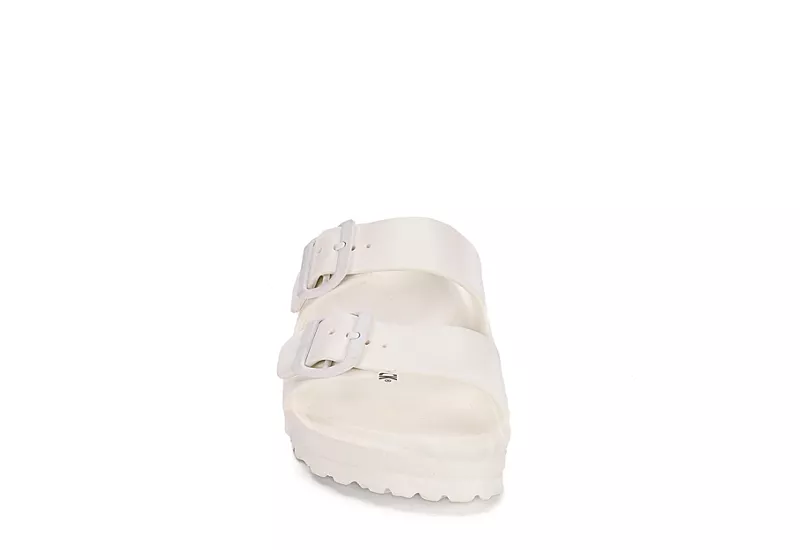 An upgrade on the laid-back comfort pioneer, the Arizona Essentials women’s slide sandal by Birkenstock features an EVA footbed with pronounced arch support, a roomy toe box, and a deep heel cup. Two lightweight straps with pin buckles provide an adjustable fit.