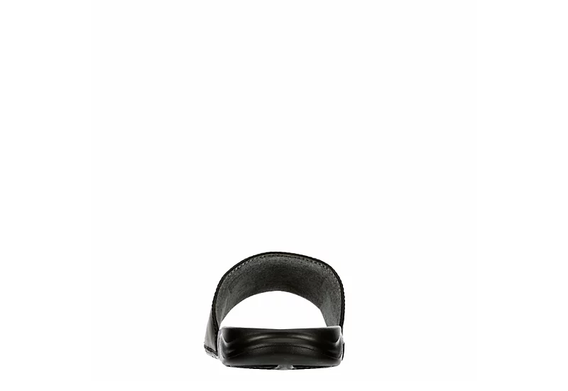 You’ve got all day to chill in this sporty Mega Big C men’s slide from Champion. With a faux leather upper featuring a brushed fabric lining for a nice feel, this slide also has the classic Champion logo for a stylish look. The contoured foam footbed comforts while the traction sole has great grip for excellent wear.