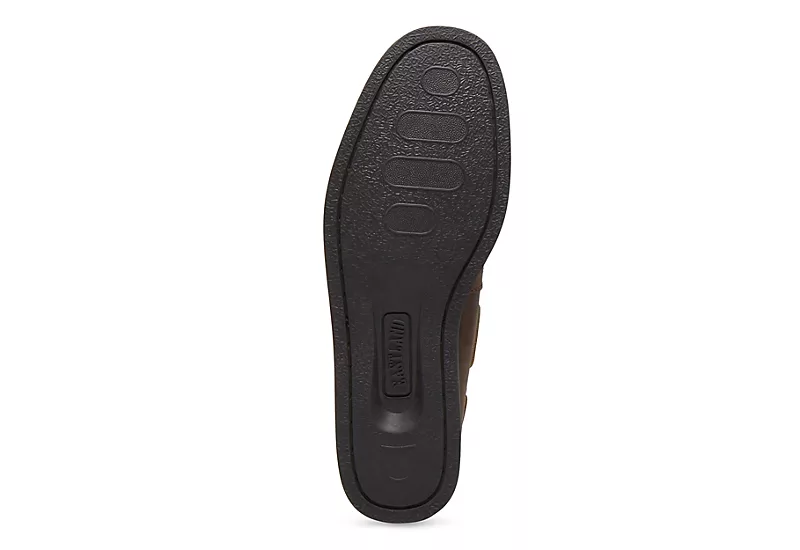 Captain your ship in the classic styling of the Eastland Yarmouth men’s boat shoe. With a canvas or leather upper and 360 degree lacing, this slip-on boat shoe also features a fabric lining and bow detail. The Active Memory Foam footbed cushions your foot while the rubber sole provides traction and some bounce to your step.